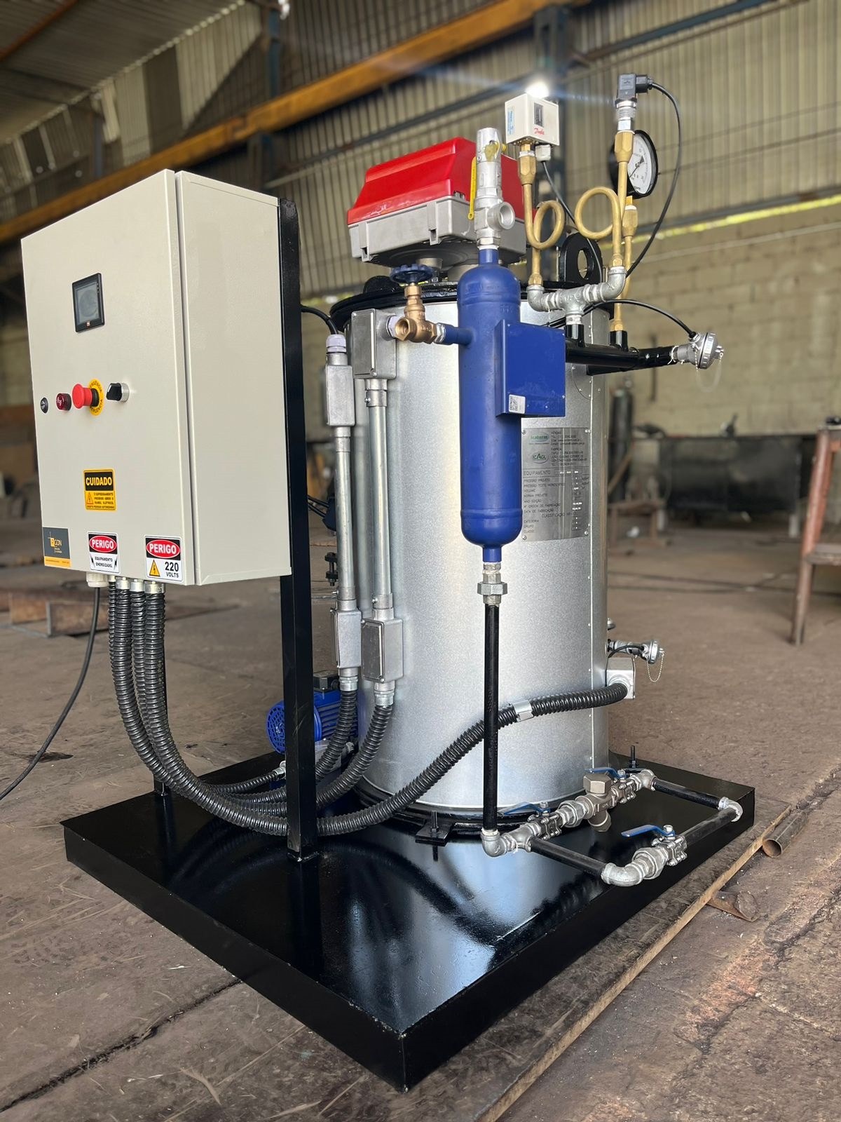 Todraw your attention to some additional relevant information, we highlight a few more points in comparing Icaterm’s ICA-GVI instant steam generators with traditional steam generators, more familiar.The design was developed to work with a monobloc burner, a device that is widely used in the market, simple to maintain and provides easy access to spare parts, resulting in lower maintenance costs. Steam generators available on the Brazilian market use homemade two-block burners, with poor combustion efficiency and maintenance usually performed by the companies themselves, often not up to standard which can lead to higher maintenance costs.